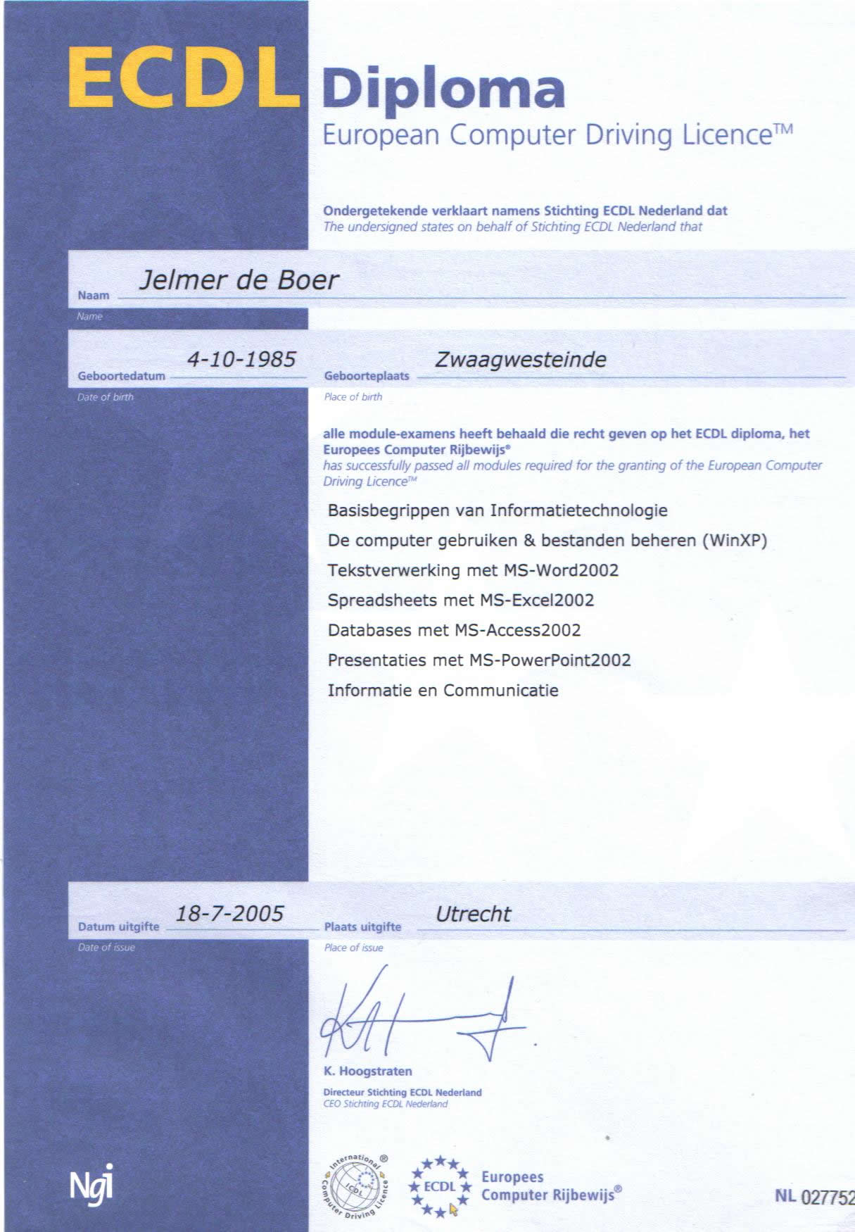 ECDL Start diploma (deze werd uitgereikt nadat je 4 toetsen succesvol had gedaan)